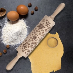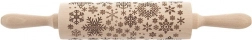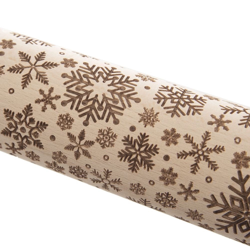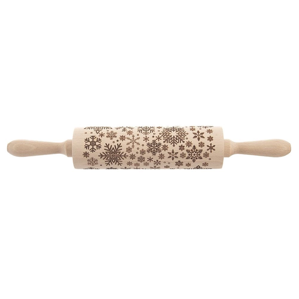 Drewniany wałek reliefowy ze wzorem śnieżynek do łatwego zdobienia ciasteczek, wypieków i fondantu. Wygodna konstrukcja obrotowa z ergonomicznymi uchwytami, wysokiej jakości drewno bukowe o naturalnych właściwościach antybakteryjnych oraz szybkie tworzenie dekoru bez wysiłku.