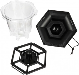 - Plastik (przezroczysty zasobnik, czarna podstawa i daszek)