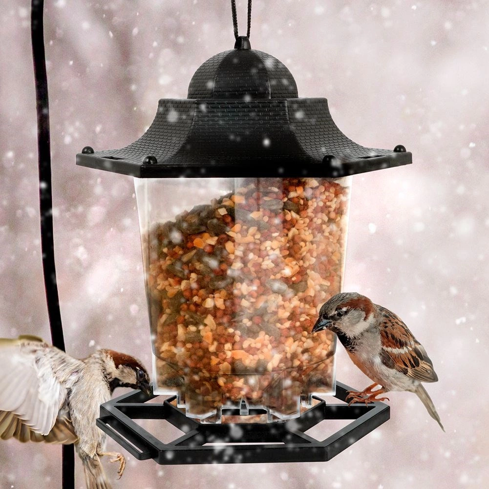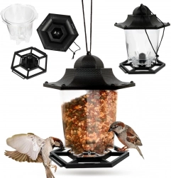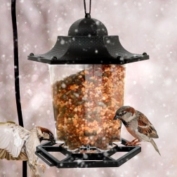 Transparentny korpus karmnika pozwala od razu sprawdzić, kiedy pora dosypać ziarno. Koniec z zgadywaniem – zawsze wiesz, ile karmy pozostało.
