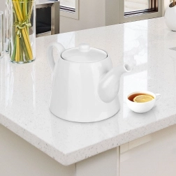 Popularny i praktyczny dzbanek z białej porcelany doskonale uzupełni Twoją zastawę stołową i pozwoli przygotować większą ilość ulubionego napoju dla rodziny i gości. Dzięki solidnemu uchwytowi i ergonomicznej wylewce nalewanie jest płynne i bez kapania, a dobrze dopasowana pokrywka pomaga dłużej utrzymać ciepło napoju.