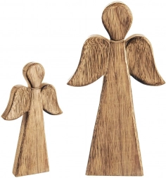 Każdy anioł jest unikatowy. Widoczna struktura drewna podkreśla naturalny urok dekoracji i łatwo łączy się z innymi naturalnymi materiałami.