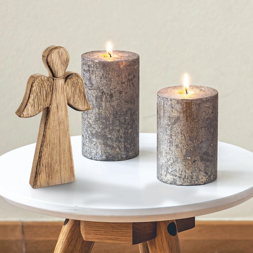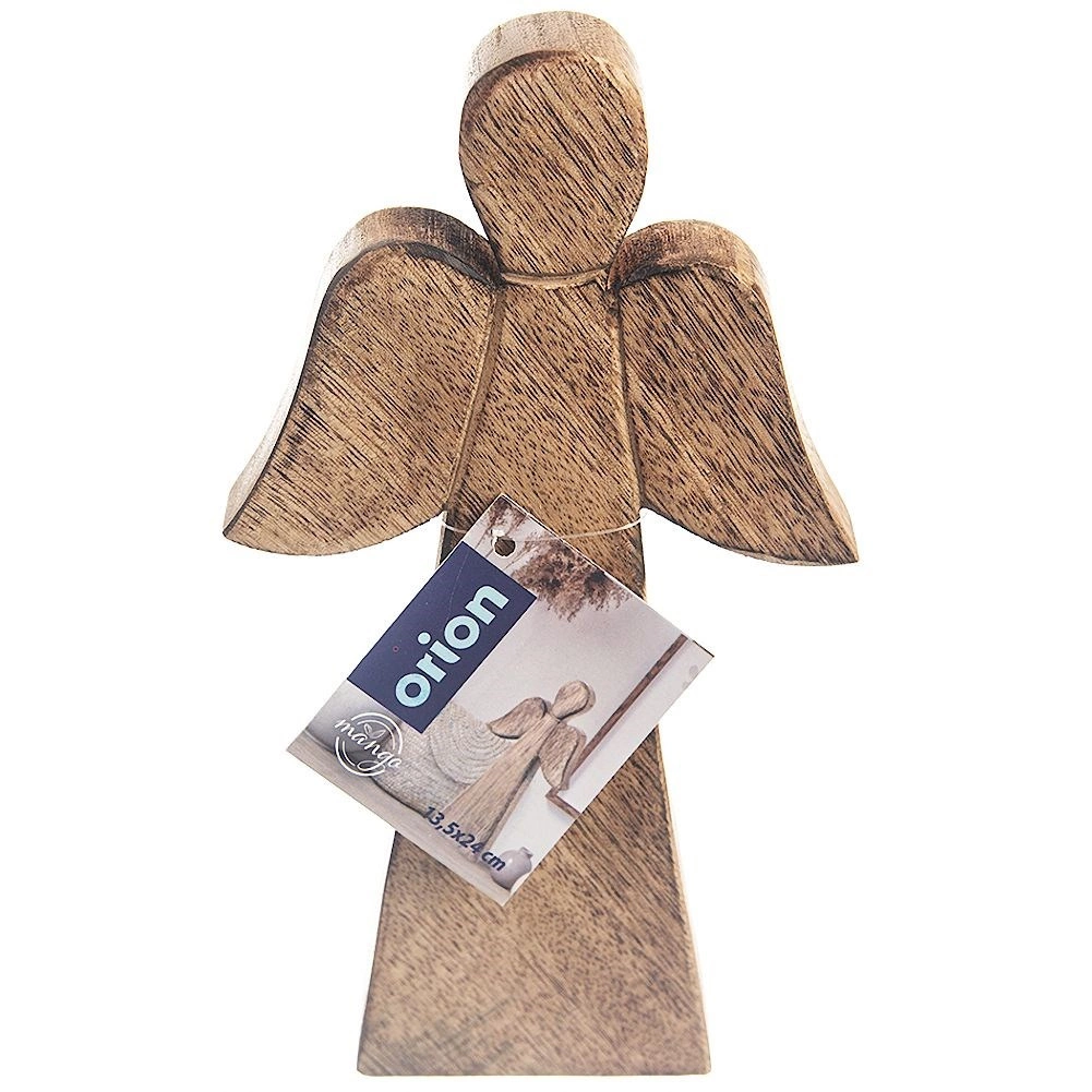 Ta stylowa figurka anioła została wykonana z wysokiej jakości drewna mango z widocznym rysunkiem, który nadaje każdemu egzemplarzowi wyjątkowy charakter. Dzięki czystym liniom i naturalnemu wykończeniu doskonale pasuje do wnętrz minimalistycznych, skandynawskich i rustykalnych.