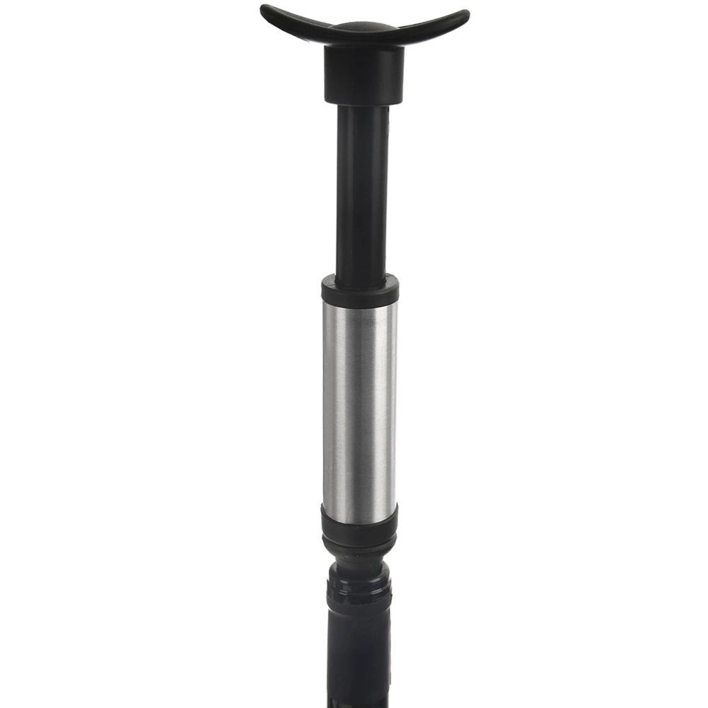 Ciesz się otwartą butelką wina także przez kolejne dni bez utraty smaku i aromatu. Ten zestaw próżniowy do wina łączy wytrzymałą pompkę ze stali nierdzewnej z parą silikonowych zatyczek w czarnym kolorze. Usuwając powietrze z butelki, znacząco ograniczysz utlenianie i przedłużysz świeżość napoju.