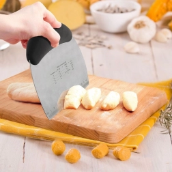 Ta wielofunkcyjna szpatuła łączy rozgarniającą łopatkę, siekacz i skrobak w jednym. Świetnie sprawdza się do pracy z ciastem, kremami i fondantem, ułatwia przenoszenie, porcjowanie oraz wyrównywanie powierzchni. Dzięki ostrej krawędzi z łatwością posiekasz orzechy, cebulę czy warzywa.