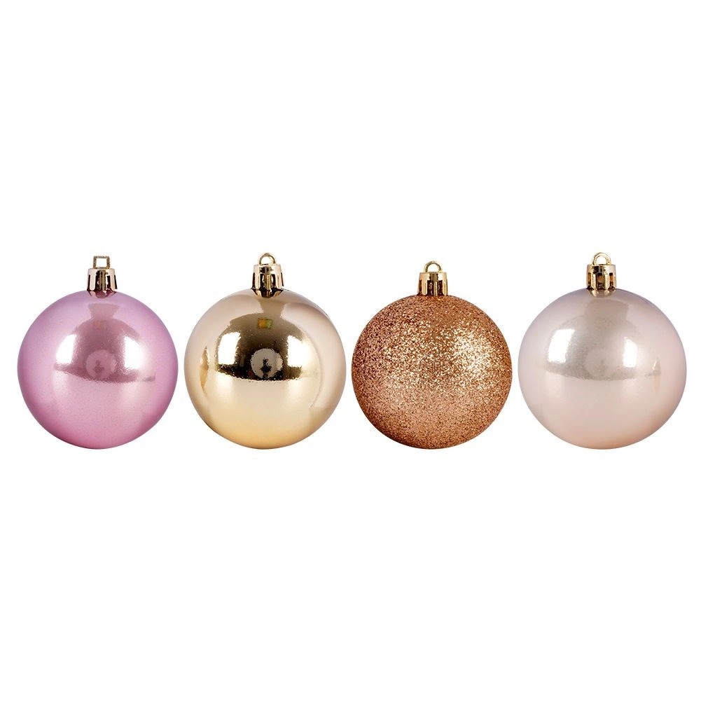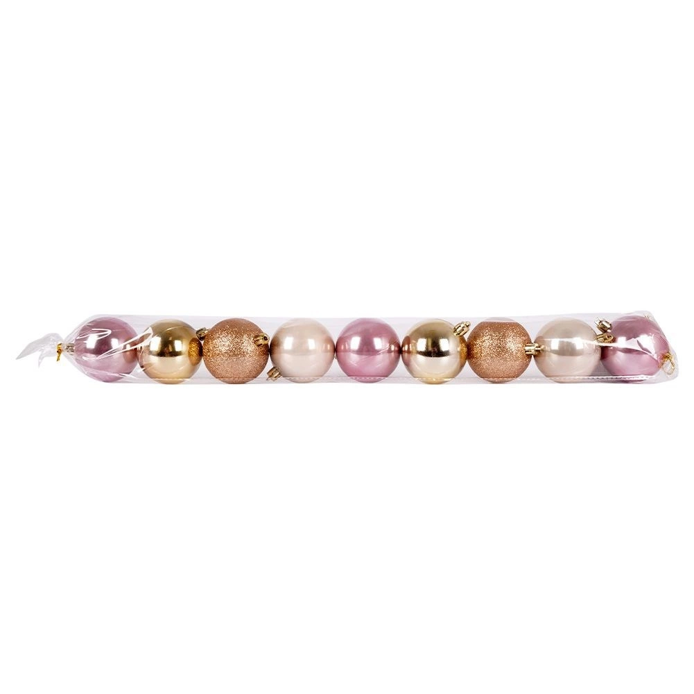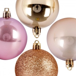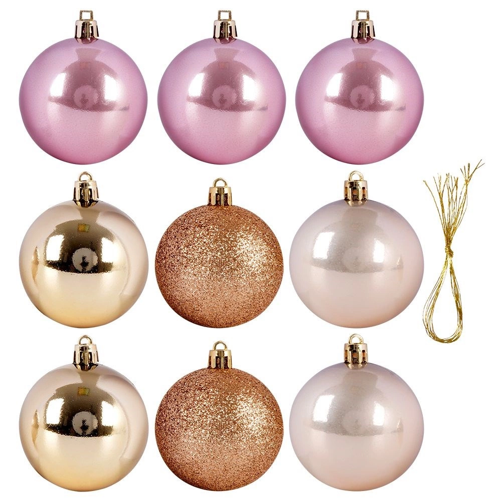 Udoskonal swoje świąteczne dekoracje uniwersalnym zestawem 9 nietłukących ozdób w popularnych odcieniach różu, szampana i złota. Połączenie połysku, matu i brokatu nada choince i aranżacjom stylowy, nowoczesny wygląd, który świetnie pasuje do klasycznych i współczesnych wnętrz.