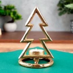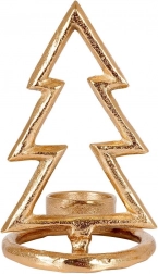 Wprowadź do domu świąteczny nastrój ze złotym świecznikiem w kształcie choinki. Minimalistyczna sylwetka, solidna metalowa konstrukcja i subtelny połysk czynią z niego ponadczasowy dodatek do salonu, sypialni i jadalni. Świetnie prezentuje się solo i w zestawie.