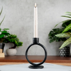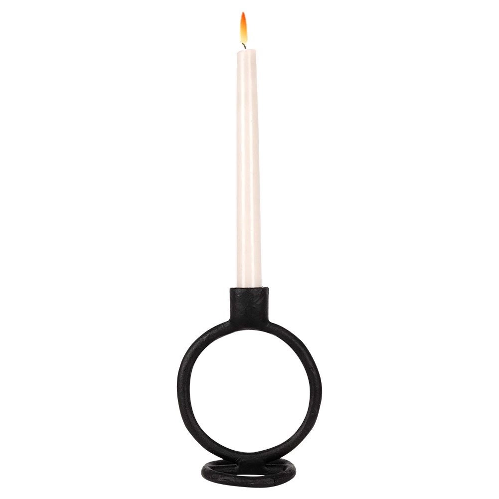Rzeźbiarska okrągła forma i matowa czerń czynią ze świecznika nowoczesny akcent, który podkreśla charakter wnętrza bez zbędnych ozdób.