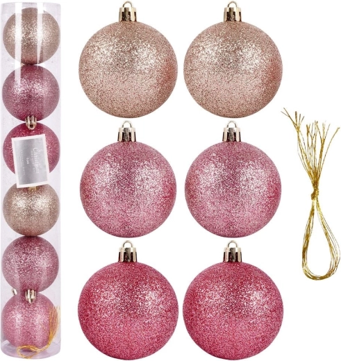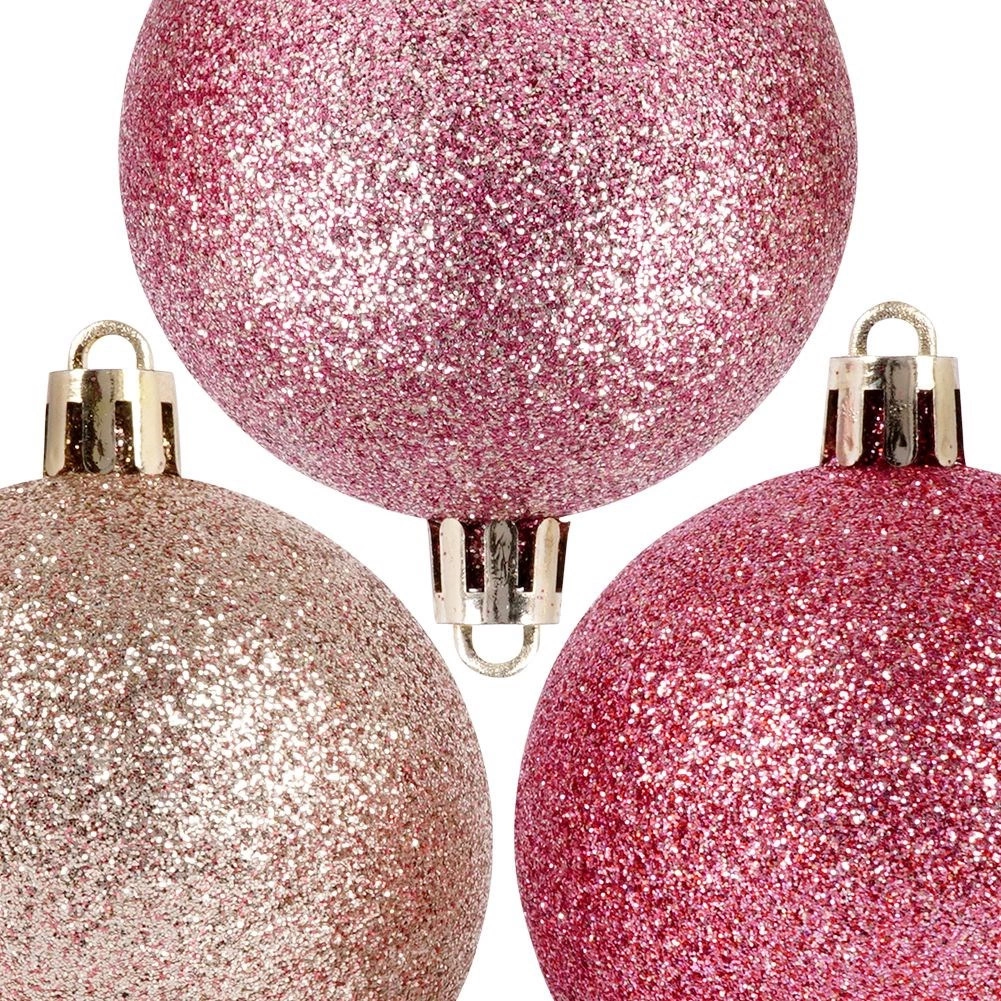 - Stylowa dekoracja: trzy odcienie różu w brokatowym wykończeniu dla harmonijnego, świątecznego wyglądu.
