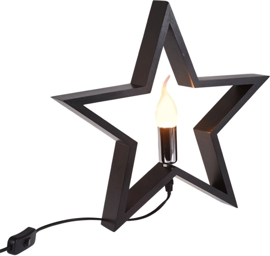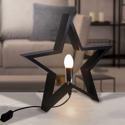 Ta dekoracyjna lampka stołowa w kształcie gwiazdy wnosi do wnętrza przytulne światło i nowoczesny akcent. Czarne, drewniane wykończenie prezentuje się elegancko i łatwo łączy się ze stylem industrialnym, nowoczesnym i klasycznym.