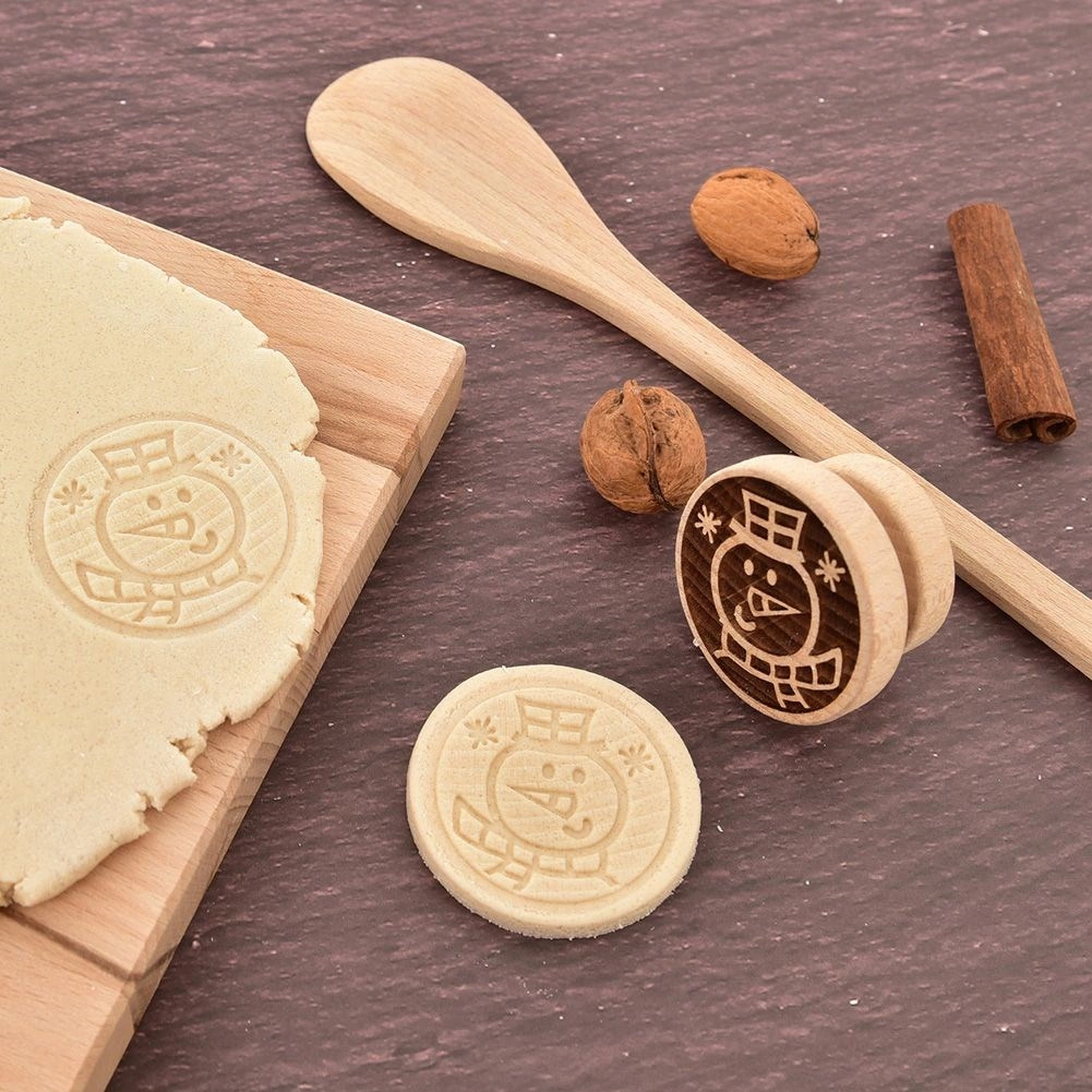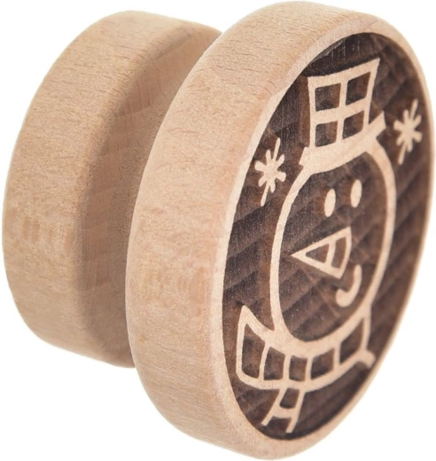 Odkryj magię domowego pieczenia z drewnianą pieczątką do ciastek ze wzorem bałwana. Z buku, z wygodnym uchwytem i średnicą 5,5 cm dla precyzyjnego odcisku oraz uroczego zimowego motywu na ciastkach, pierniczkach i fondancie.
