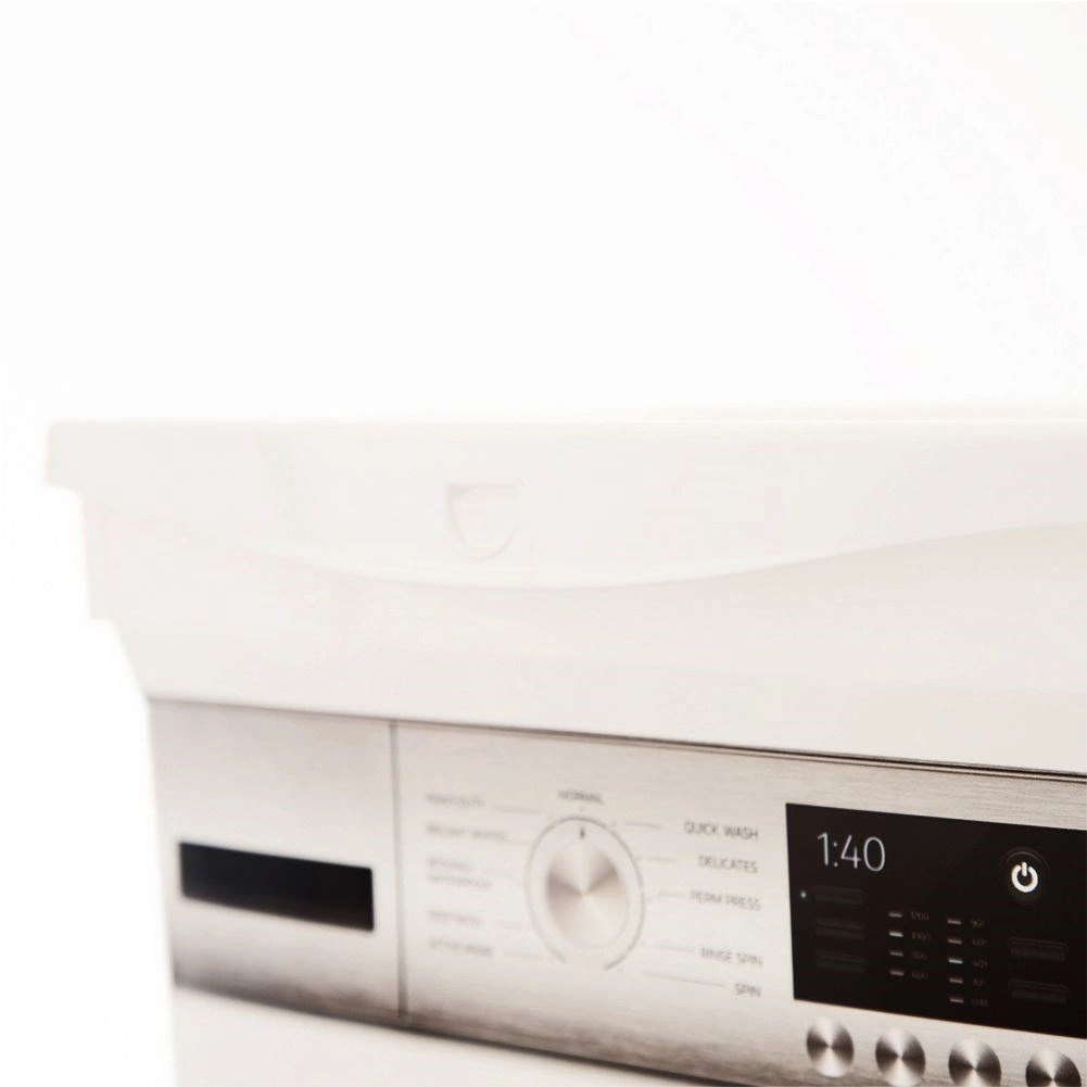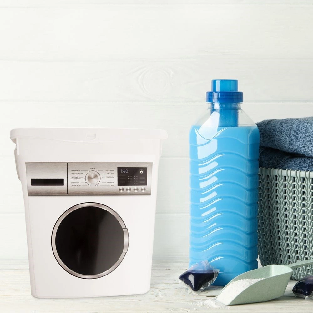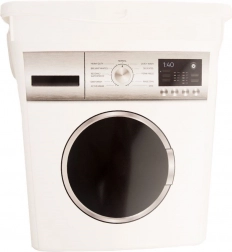 Utrzymaj porządek w pralni i łazience. Pojemnik z nadrukiem pralki oferuje wystarczająco dużo miejsca na środki piorące, a dzięki zamykanej pokrywie pomaga zachować ich świeżość i zapach. Wytrzymałe wykonanie z wysokiej jakości plastiku w białym kolorze jest łatwe w pielęgnacji i doskonale wpasuje się w każde wnętrze.