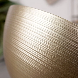 Ta stylowa szklana miska w eleganckim złotym kolorze świetnie uzupełni Twój stół. Dzięki kompaktowemu rozmiarowi i pojemności 600 ml nadaje się do serwowania sałatek, dodatków, jogurtów, musli lub drobnych przekąsek. Matowa powierzchnia z subtelną strukturą pasów tworzy efektowny wygląd, który pięknie prezentuje się przy każdej okazji.