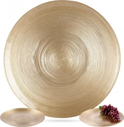 Stylowy szklany talerz w nowoczesnym złotym kolorze to doskonały wybór zarówno do codziennego użytku, jak i odświętnych przyjęć. Dzięki solidnemu szkłu i ponadczasowemu wzornictwu świetnie komponuje się z różnymi aranżacjami stołu, dodając mu eleganckiego charakteru.