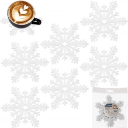Eleganckie filcowe podkładki w kształcie śnieżynek chronią Twój stół i dodają świątecznego nastroju. Zestaw zawiera 6 sztuk o wymiarach 13,5 × 12 cm. Są praktyczne, dekoracyjne i dzięki wysokiej jakości materiałowi trwałe. Odpowiednie do gorących i zimnych napojów, a także jako podkładki pod niekapiące świece.