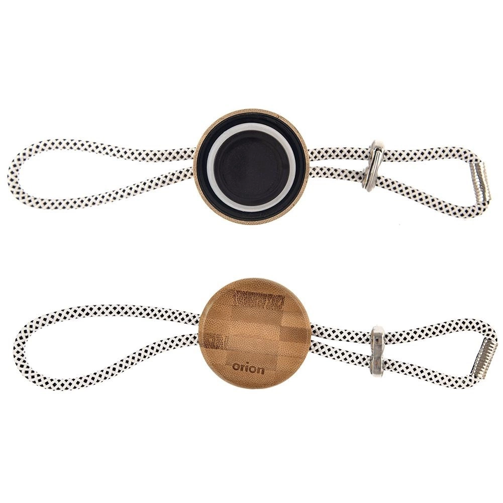 Naturalne bambusowe zamknięcie z gwintem i silikonowym pierścieniem gwarantuje szczelność. Zintegrowany sznurek ułatwia noszenie i zawieszanie.