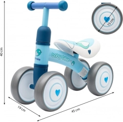 - Stabilność czterech kół – pewność przy pierwszych krokach na jeździku.