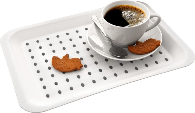 Taca świetnie sprawdzi się do codziennego użytku i obsługi gości podczas przyjęć. Jest lekka, łatwa do umycia i dzięki wysokiej jakości wykonania wytrzyma długotrwałe użytkowanie. Uniwersalny wymiar 33 × 23 cm jest idealny do przenoszenia napojów, deserów czy śniadań do łóżka.