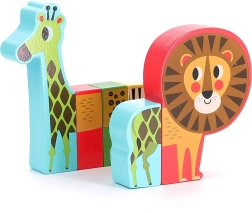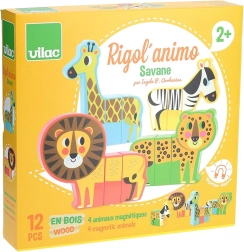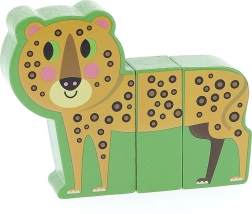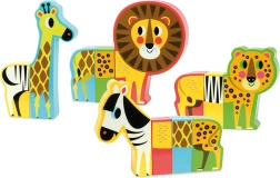 Drewniane puzzle Wesołe safari oferują dzieciom od 2 lat nieco inną zabawę: każde zwierzątko składa się z masywnych elementów z ukrytymi magnesami, które gładko do siebie przylegają. Części można wymieniać między poszczególnymi zwierzętami, tworząc zabawne „hybrydy”, które pobudzają wyobraźnię i ciekawość.