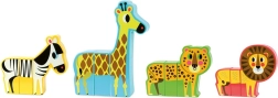 Cztery zwierzęta safari z magnetycznymi elementami można ze sobą dowolnie łączyć – idealne do rozwijania kreatywności i wyobraźni.