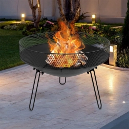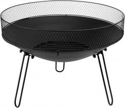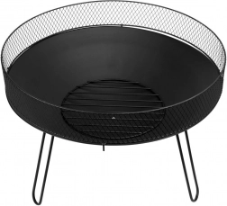 Stylowe ogrodowe palenisko o średnicy 60 cm i wysokości 44 cm zapewnia bezpieczny i kontrolowany ogień na tarasie lub w ogrodzie. Wytrzymała metalowa konstrukcja w czarnym kolorze, stabilny trójnóg oraz ochronny wiatrołap z siatki skutecznie zatrzymują iskry i poprawiają przepływ powietrza, ułatwiając rozpalanie. Idealne do posiedzeń przy ogniu, prostego opiekania oraz jako designerski element wystroju zewnętrznego.