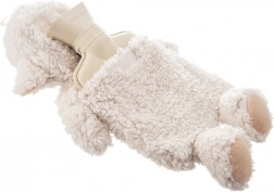 Uroczy termofor z pluszowym pokrowcem w kształcie owieczki dostarcza przyjemne ciepło lub chłód dokładnie tam, gdzie jest to potrzebne. Dzięki pojemności 750 ml i bezpiecznej zakrętce łagodzi bóle brzucha, pleców i mięśni, ogrzewa łóżko oraz pomaga w relaksie i zasypianiu. Pokrowiec jest miękki w dotyku, łatwo zdejmowany i nadaje się do prania w 30 °C.