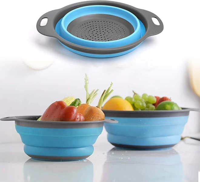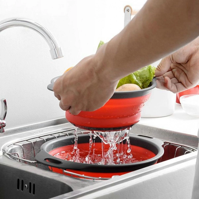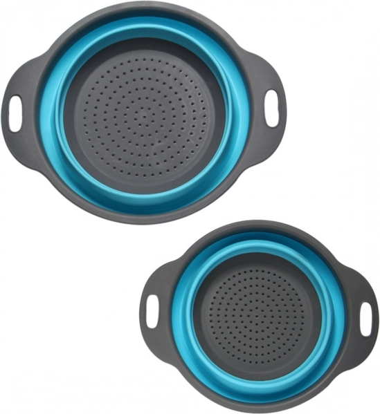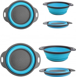 - Zestaw dwóch wyjątkowo praktycznych, silikonowych, okrągłych durszlaków
