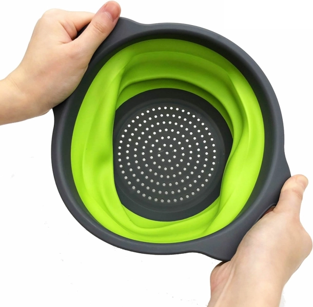 Po złożeniu durszlak ma wysokość tylko 3 cm, co ułatwia jego transport lub przechowywanie w szafce.