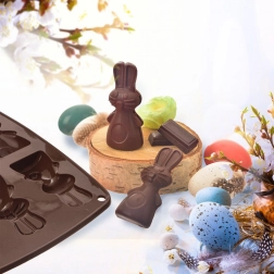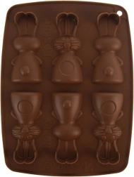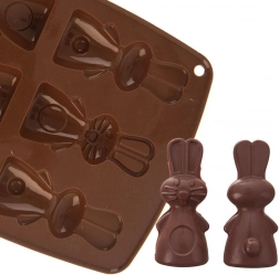 Ta brązowa silikonowa forma pozwala jednocześnie przygotować do 6 uroczych króliczków. Dzięki elastycznemu, nieprzywierającemu materiałowi z łatwością wyjmiesz gotowe ciasteczka, praliny lub czekoladki z detalicznym reliefem. Forma jest lekka, łatwa do przechowywania i nie pochłania zapachów ani smaków.