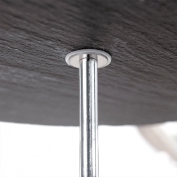 Chromowany pręt centralny z pierścieniem nośnym ułatwia obsługę, montaż oraz przenoszenie etażera między pomieszczeniami.