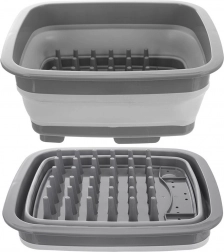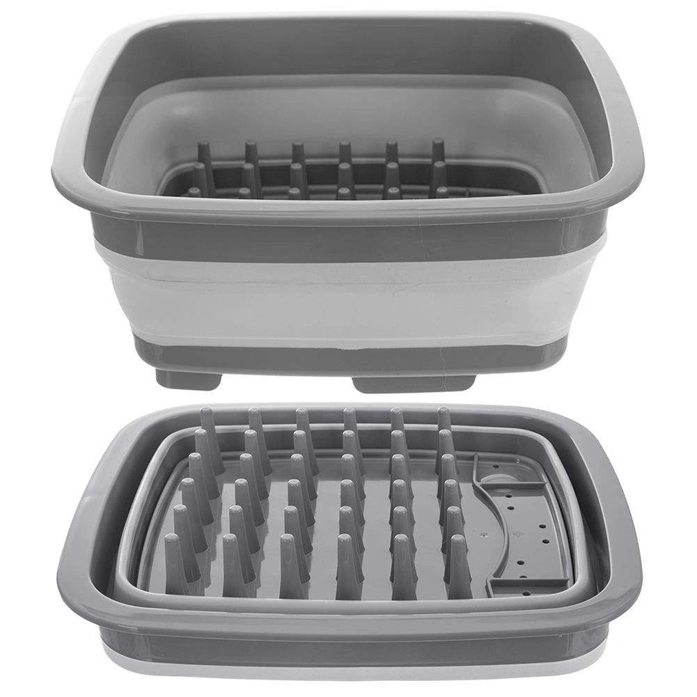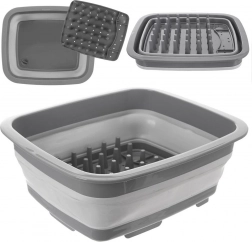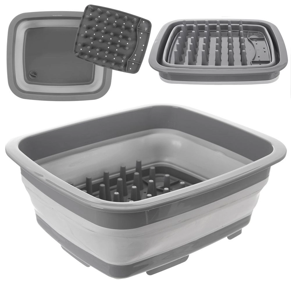 Kompaktowa składana suszarka ze zatyczką i rozprowadzeniem wody służy jednocześnie jako mały zlew lub misa. Idealna do małej kuchni i na kemping – łatwa w czyszczeniu i oszczędza miejsce. Składana konstrukcja, odpływ z zatyczką, wyjmowana wkładka do zmywarki oraz uniwersalne zastosowanie na talerze, kubki i sztućce.
