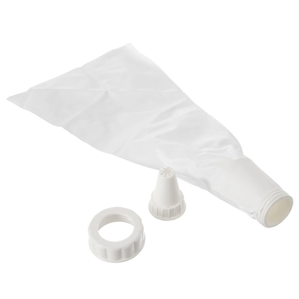 Adapter pewnie trzyma dyszę nawet przy gęstym kremie i wyższym nacisku. Dysze można wymieniać bez wyjmowania nadzienia z rękawa.