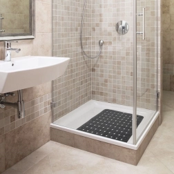 Dziesiątki przyssawek na całej powierzchni zapewniają pewne mocowanie do gładkiej powierzchni prysznica lub wanny i minimalizują ryzyko poślizgnięcia.