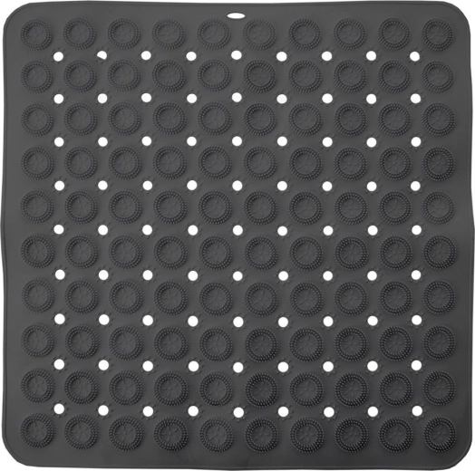 Praktyczna antypoślizgowa mata do prysznica lub wanny o wymiarach 54 × 54 cm zapewnia bezpieczny krok na mokrej powierzchni. Dzięki gęstym przyssawkom mocno trzyma się podłoża, ma skuteczne otwory drenażowe oraz przyjemne wypustki masujące dla komfortu. Wykonana z wytrzymałego materiału w uniwersalnym szarym kolorze, który pasuje do każdej łazienki. Bezpieczeństwo, komfort i łatwa pielęgnacja w jednym.