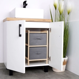 W łazience posłuży jako praktyczny organizer na kosmetyki, w garderobie na dodatki i drobną bieliznę. Szafkę można ustawić na podłodze lub wykorzystać jako organizer na blat na komodzie, stole czy biurku – zawsze zapewni przejrzyste i estetyczne przechowywanie.