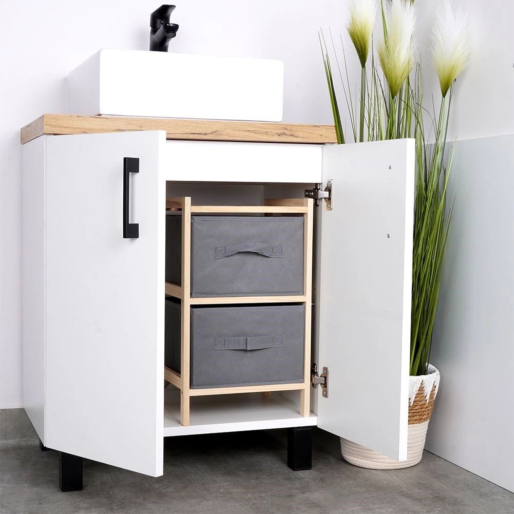 Dzięki wymiarom 28 × 25 × 46 cm zmieści się w przedpokoju, łazience i garderobie. Można ją ustawić na podłodze lub użyć jako organizer na blat.