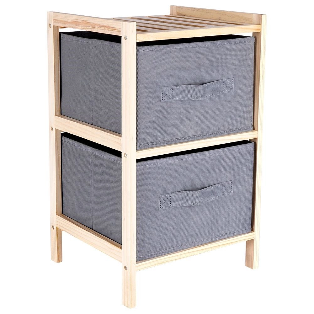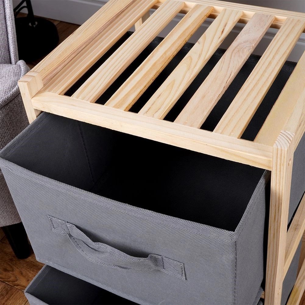 Ta kompaktowa szafka o wymiarach 28 × 25 × 46 cm jest idealna do salonu, sypialni, przedpokoju i pokoju dziecięcego, a dzięki wytrzymałym tekstylnym szufladom w szarym kolorze utrzyma drobiazgi zawsze pod ręką. Naturalne drewno sosnowe nadaje meblowi solidność i ponadczasowy wygląd, który doskonale wpisuje się w skandynawskie wnętrza.