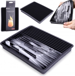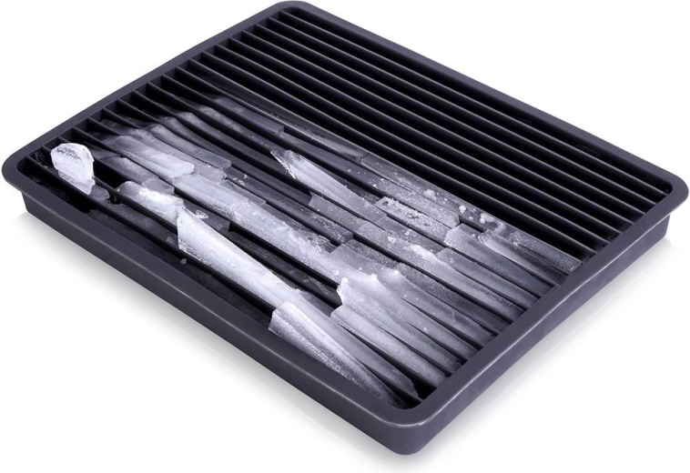 Elastyczna forma z wytrzymałego termoplastu w czarnym kolorze umożliwia szybkie i wygodne przygotowanie kruszonego lodu bez potrzeby używania kruszarki. Wystarczy napełnić wodą, zamrozić, a następnie lekko pognieść formę – lód łatwo się uwalnia i jest gotowy do serwowania.