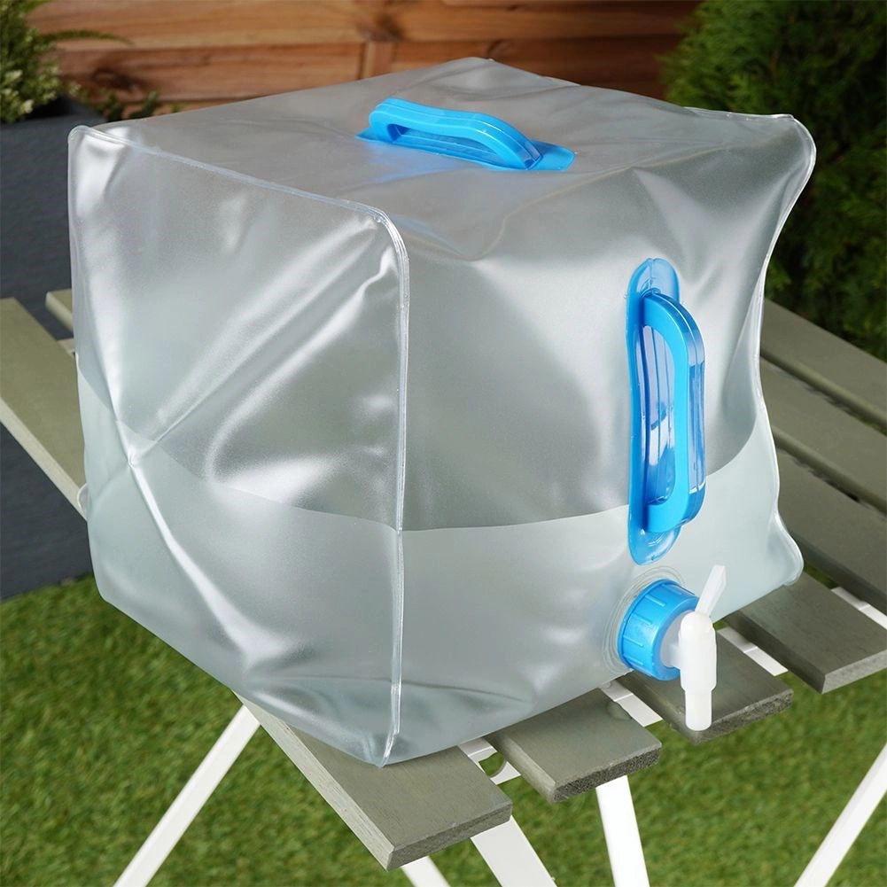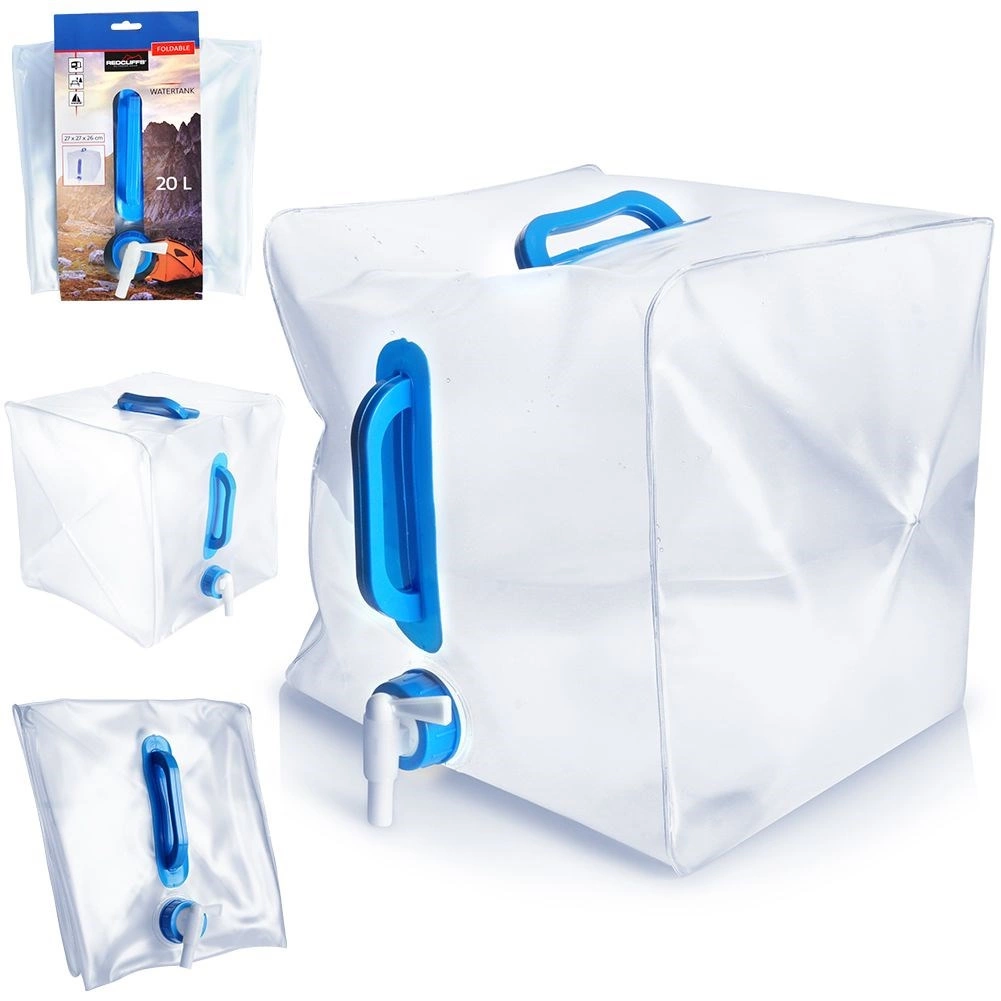 Składany kanister na wodę pitną o pojemności 20 litrów wykonany jest z wysokiej jakości, transparentnego plastiku, który jest wytrzymały, a jednocześnie lekki. Wbudowany kranik umożliwia kontrolowane nalewanie bez rozchlapywania, a ergonomiczne uchwyty ułatwiają przenoszenie nawet pełnego zbiornika.