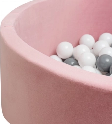 Ten stylowy różowy piankowy basen z piłeczkami NEW BABY jest idealny do pokoju dziecięcego i salonu. Miękkie ścianki z pianki poliuretanowej bez twardych elementów zapewniają maksymalne bezpieczeństwo i wygodę podczas codziennej zabawy, rzucania i wspinania się. W zestawie znajduje się 150 plastikowych piłeczek w neutralnych kolorach, które wspierają rozwój małej i dużej motoryki oraz percepcję sensoryczną.