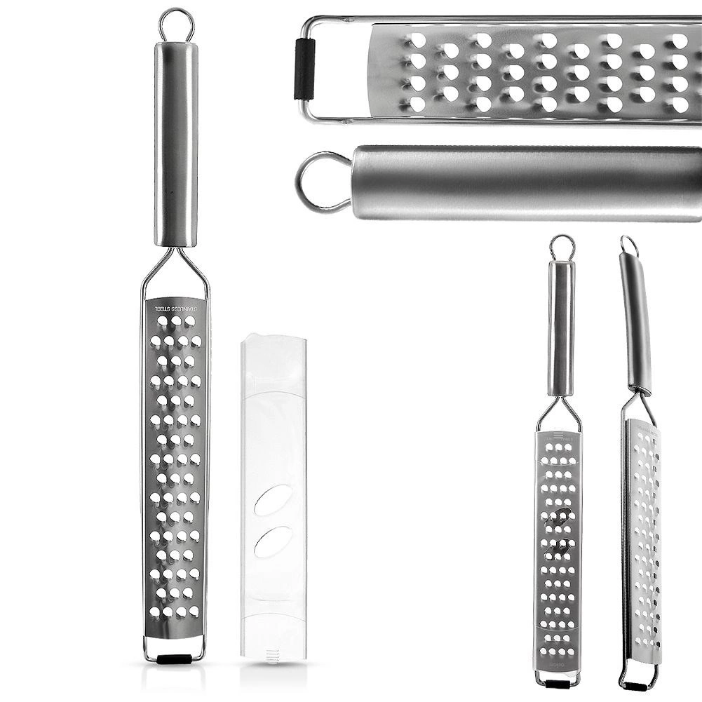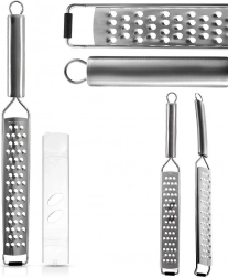 Tarka doskonała do twardych serów, warzyw korzeniowych, czosnku, orzechów, a także do skórki cytrusowej, czekolady i przypraw, takich jak cynamon, imbir czy gałka muszkatołowa. W zestawie ochronne etui do bezpiecznego przechowywania w szufladzie bez ryzyka uszkodzenia innych narzędzi. Wykonana z trwałej stali nierdzewnej dla łatwej pielęgnacji i długiej żywotności.