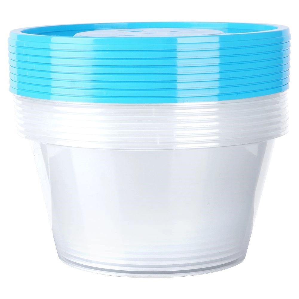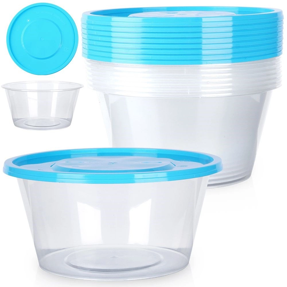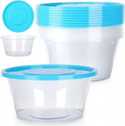 Z tym uniwersalnym zestawem 10 okrągłych pojemników o pojemności 650 ml zapanuje porządek w lodówce i spiżarni. Przezroczyste ścianki umożliwiają natychmiastową kontrolę zawartości, niebieska pokrywka zapewnia niezawodne zamknięcie, a żywność pozostaje dłużej świeża. Dzięki możliwości sztaplowania pojemniki oszczędzają cenne miejsce.