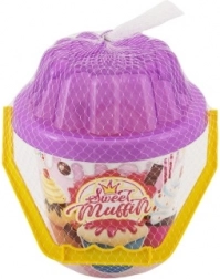 Lekkie wiaderko z uchwytem i motywem Sweet Muffin służy jako miejsce do przechowywania całego zestawu i ułatwia przenoszenie w siatce.