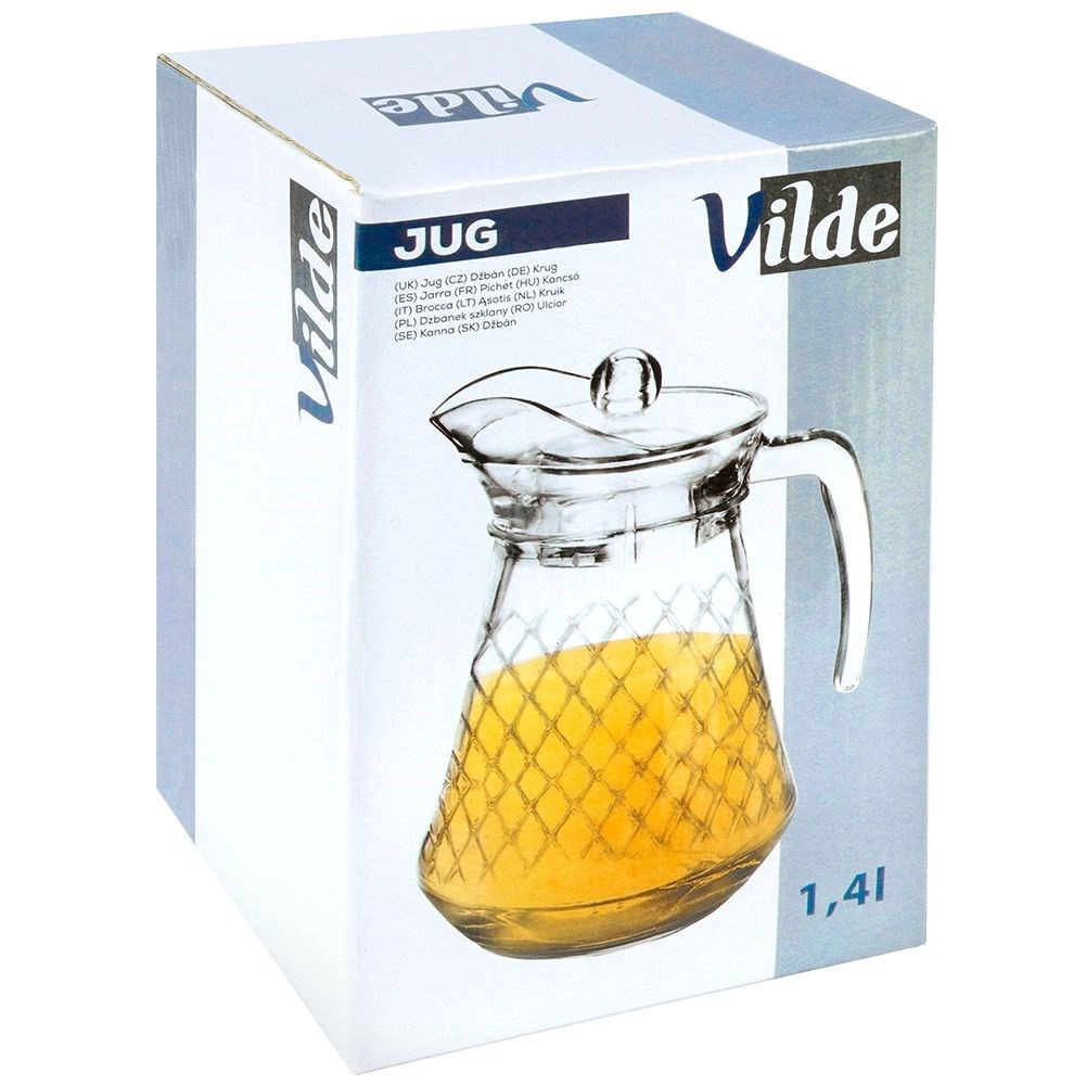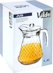 Ten uniwersalny szklany dzbanek łączy styl i praktyczność. Przezroczyste korpus z diamentowym wzorem pięknie prezentuje się na każdym stole, a solidne szkło zapewnia długą żywotność. Z pokrywką mieści do 1,3 l, bez pokrywki do 1,4 l napoju, dzięki czemu jest perfekcyjny na rodzinne obiady, spotkania z przyjaciółmi i ogrodowe pikniki.