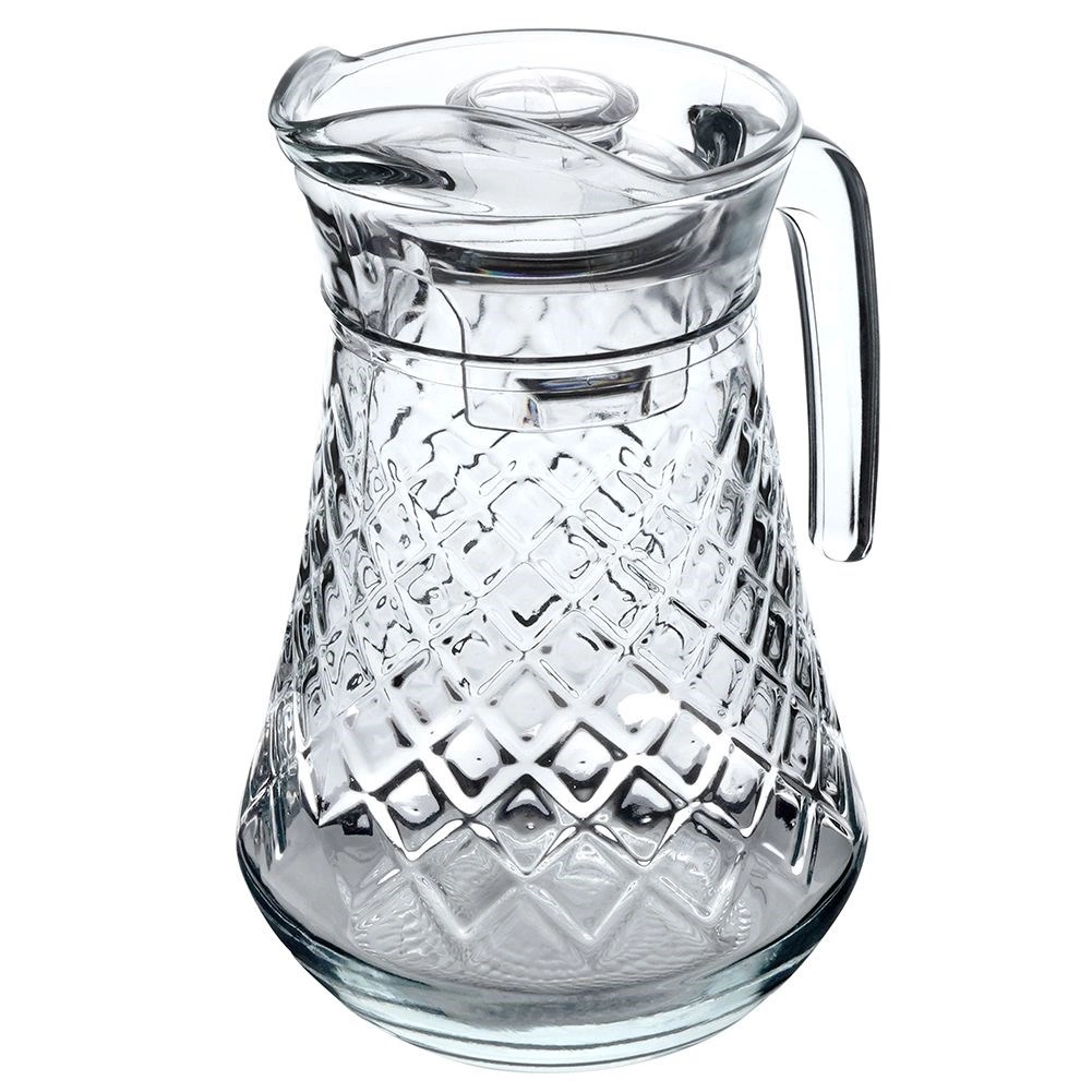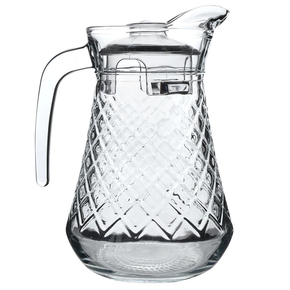 Dzbanek wykonany jest z wysokiej jakości, grubego szkła z diamentowym wzorem dla lepszego chwytu i atrakcyjnego wyglądu na każdym stole.