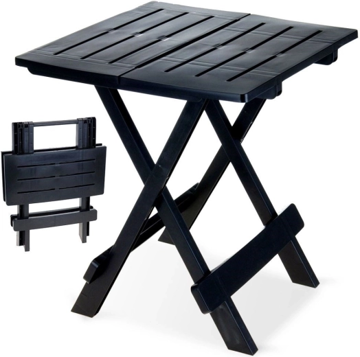 Szukasz praktycznego i uniwersalnego stolika do użytku na zewnątrz? Ten składany stolik ogrodowy w czarnym kolorze to świetny wybór do ogrodu, na balkon, taras oraz w podróży. Stabilna konstrukcja z czterema nogami zapewnia niezawodne użytkowanie, zarówno podczas serwowania, odkładania napojów, jak i jako podstawa pod kwiaty i dekoracje.