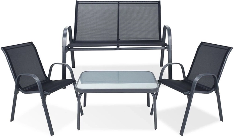 Ten uniwersalny zestaw ogrodowy łączy nowoczesny design, wygodę i praktyczność. Metalowa rama z trwałą powłoką oraz łatwy w utrzymaniu szklany blat stolika są przygotowane na codzienne użytkowanie na zewnątrz. Oddychająca siatka siedzisk i oparć zapewnia przyjemne siedzenie nawet w ciepłe dni.