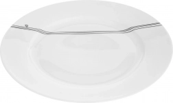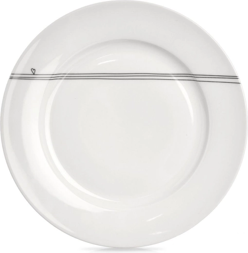Elegancki porcelanowy talerz o średnicy 27 cm w białym kolorze z delikatnym motywem linii i serca to świetny wybór na co dzień i od święta. Uniwersalne zastosowanie, klasyczny design i łatwa pielęgnacja czynią z niego praktyczny dodatek do każdego domu.
