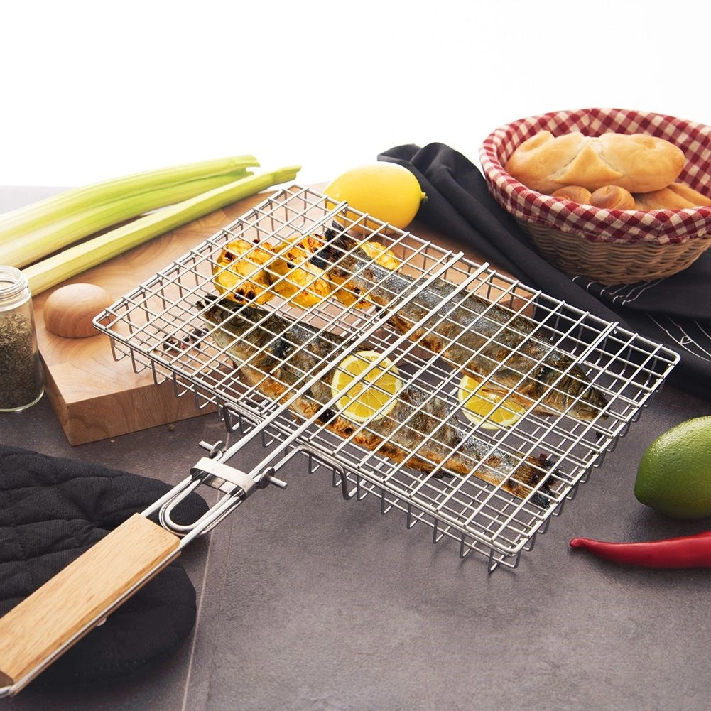 Ten zamykany kosz do grillowania jest idealny do równomiernego grillowania mniejszych i większych kawałków bez ryzyka, że wpadną przez klasyczny ruszt. Konstrukcja z chromowanej stali jest trwała, łatwa w czyszczeniu i umożliwia swobodną cyrkulację ciepła i dymu dla pełni smaku grillowanych potraw.