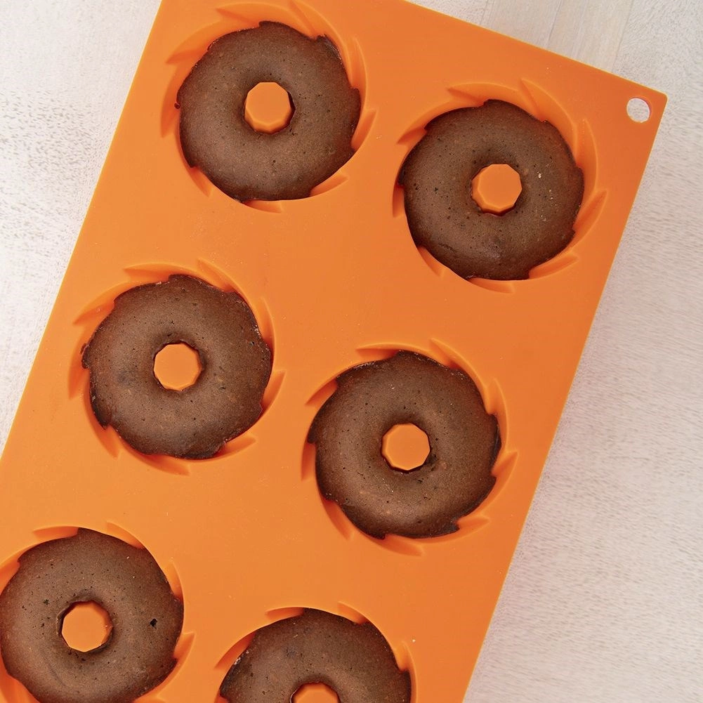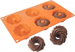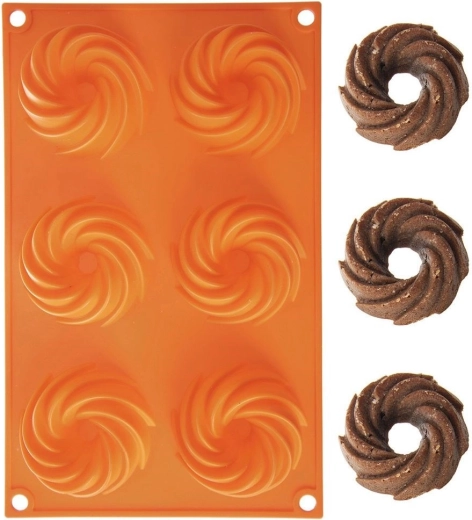 Ta pomarańczowa silikonowa forma ułatwia przygotowanie idealnie ukształtowanych mini babeczek bez przypalania i kłopotliwego smarowania. Dzięki nieprzywierającej powierzchni ciasto łatwo się wyjmuje, a forma nie pochłania zapachów ani smaków. Wymiary 28 × 17 × 3 cm mieszczą 6 deserów o średnicy 7 cm.