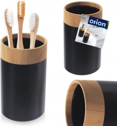 Czarny kubek łazienkowy z eleganckim drewnianym efektem pasuje do łazienek klasycznych i nowoczesnych. Dzięki kompaktowym wymiarom 7,5 × 7,5 cm i wysokości 11,5 cm nie zajmuje dużo miejsca, a jednocześnie oferuje sporo przestrzeni na codzienne potrzeby. Minimalistyczny design łatwo dopasujesz do innych dodatków w podobnym stylu.